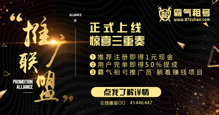 对接租号玩所有账号,价格更低!记得推荐给你的朋友哟,优惠客服V:41446447 登录  ,  注册