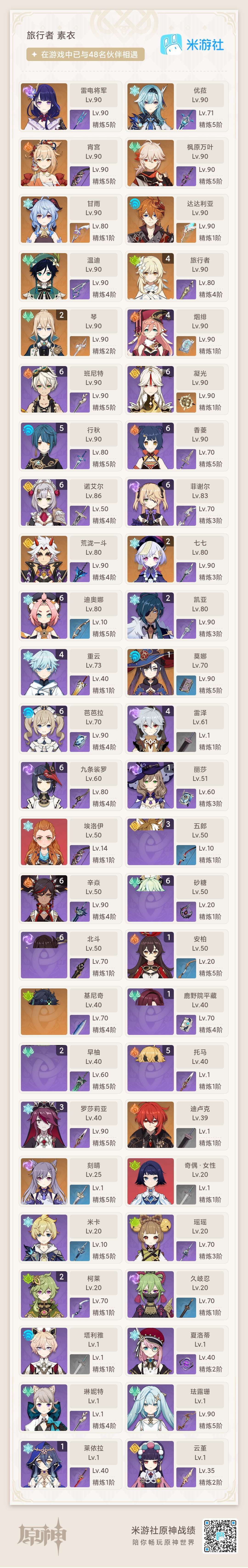 59级高练自玩号 万叶公子尤拉琴七七温蒂荒泷
