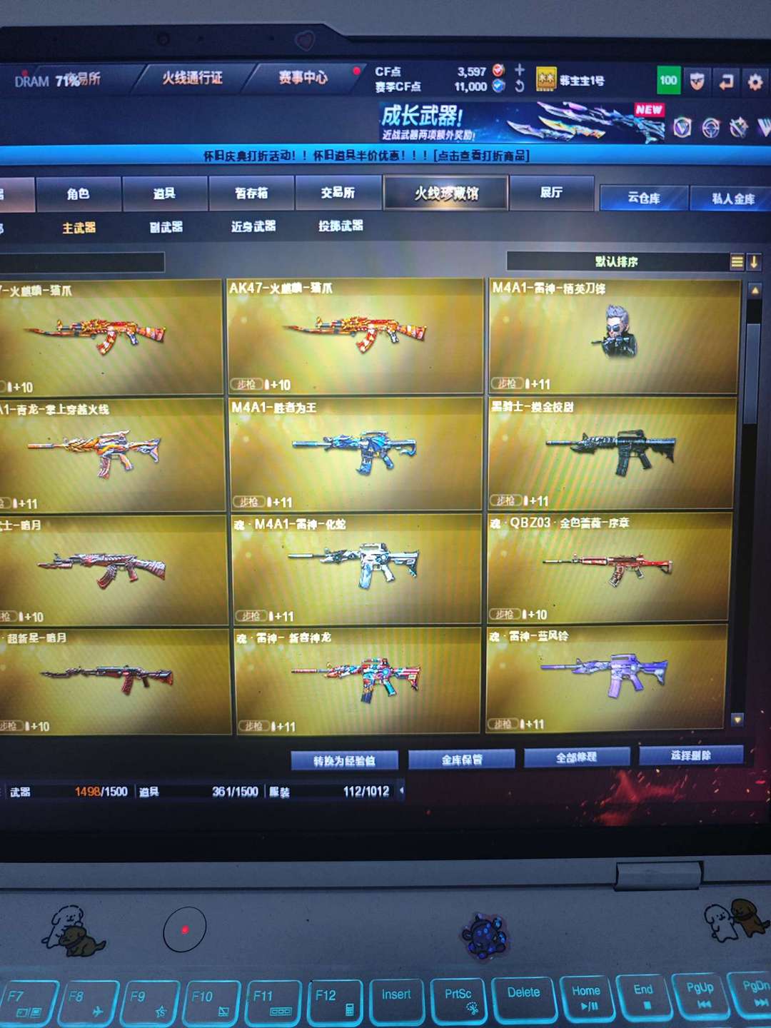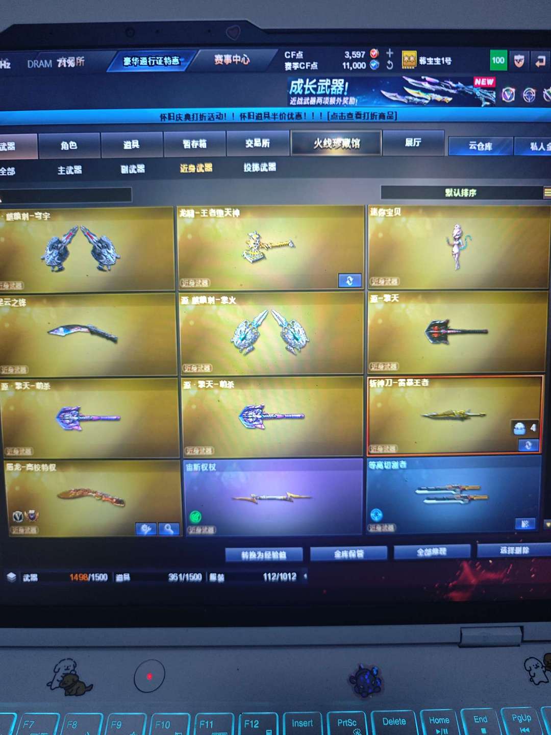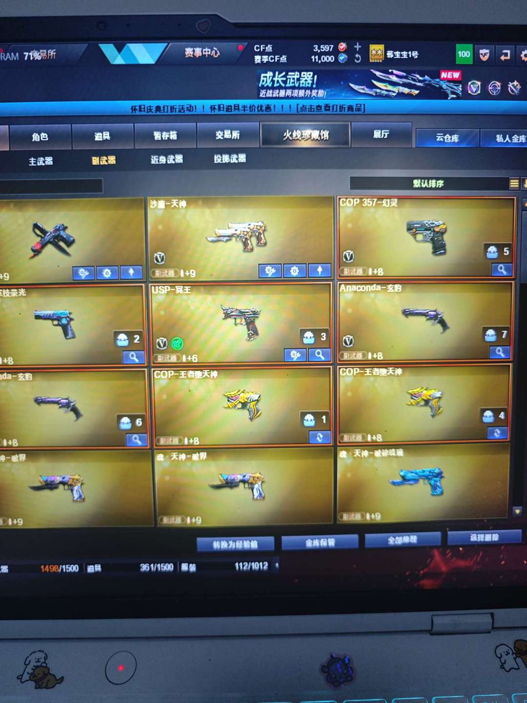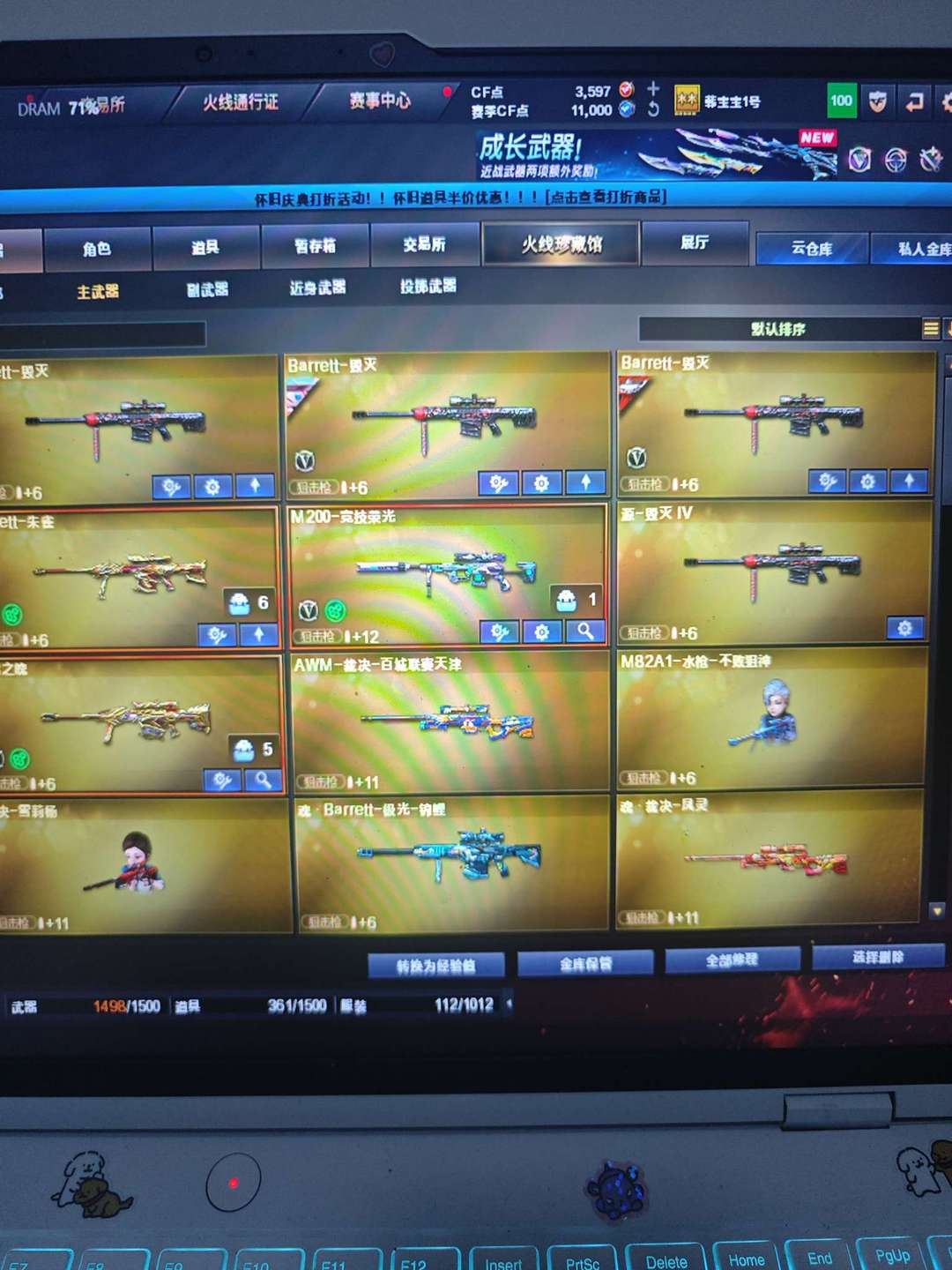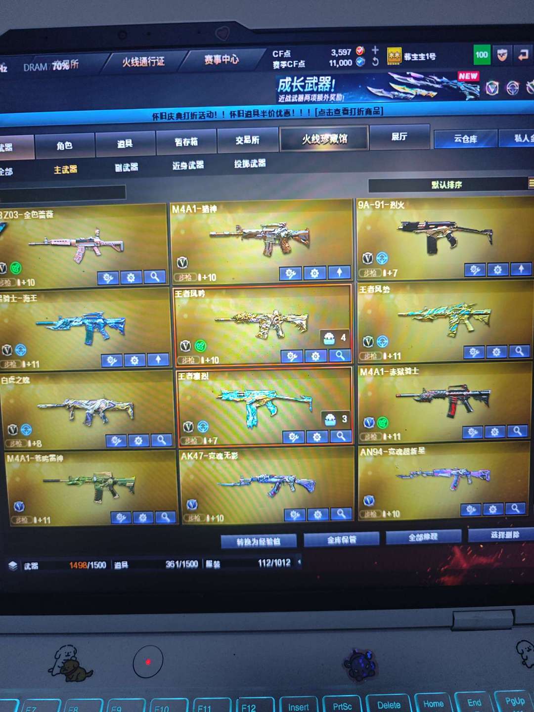 冰龙王绿豆,雨墨,王者白虎之魄,玄豹全套,竞技荣光全套,usp冥王,王者堕天神cop两把,王者堕天神龙啸,幻灵cop,王者凛烈风势云击岩刺星魄凤吟,幻影g36c,金色蔷薇破浪逐光,天启天神都有。毁灭三把,裁决玄武炼狱王者猎神,猎神黑鲨皮肤烈火雷神黑龙黑骑士擎天屠龙龙啸麒麟刺,堕天神刺,王者雷暴刀,王者凰鸣,朱雀大炮,迷你疯狂宝贝,宙斯全套,天罚星云,尼泊尔星云