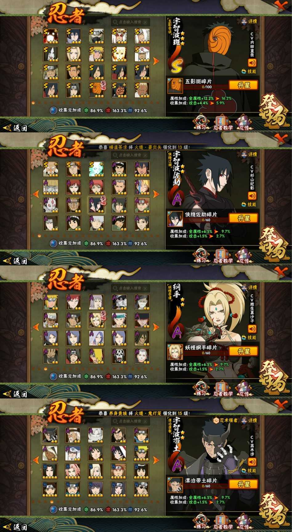 五影会谈斑♒侠隐佐助♍怪谈纲手♓漂泊带土♒秽土再不斩✖六尾鸣人♐传说自来也♏神农♉机械鸣人