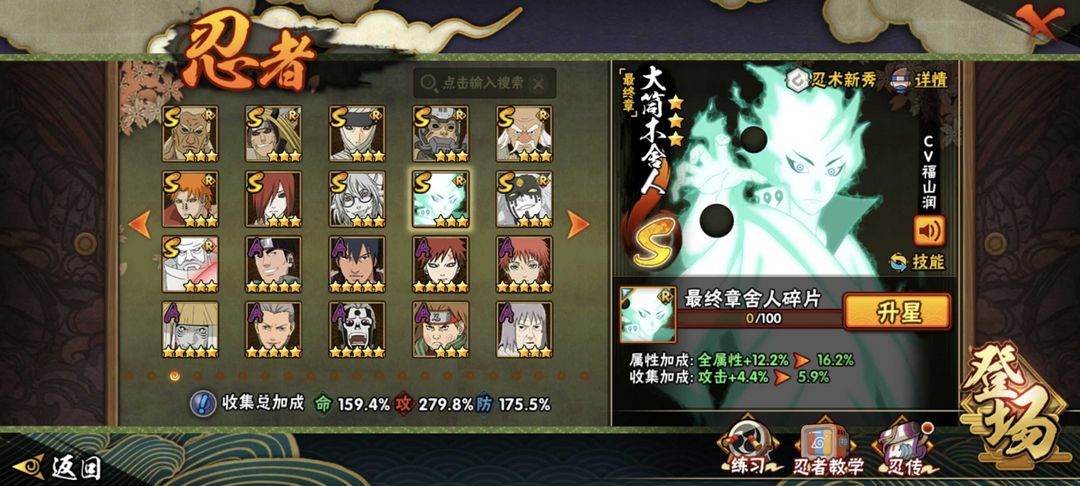 如遇顶号重新登陆就行!!! 51个S@全忍法帖@337个忍者@2500万战力@全新解斑@漂泊小南@永恒佐助@忍战小樱@九喇嘛鸣人@红夜面具男@漂泊再不斩@天道超@卑留呼@六道佩